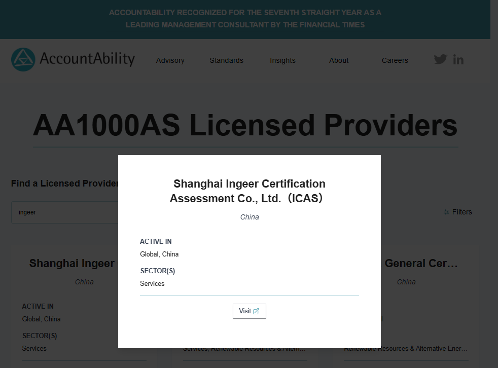 而作為 AccountAbility 認可的機構,ICAS 英格爾認證具備開展 ESG 報告鑒證的專業資質,遵循國際公認的 AA1000 審驗標準,確保鑒證服務的權威性和公信力。