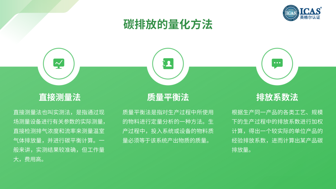 溫室氣體核查是企業(yè)綠色轉(zhuǎn)型的基礎(chǔ)工作,其方法主要包括直接測量法、質(zhì)量平衡法和排放系數(shù)法/排放因子法。直接測量法通過現(xiàn)場測量設(shè)備進(jìn)行實際測量,結(jié)果較為準(zhǔn)確,但工作量大、費用高;質(zhì)量平衡法對生產(chǎn)過程中所使用的物料進(jìn)行定量分析,適用于物料流轉(zhuǎn)清晰的生產(chǎn)環(huán)節(jié);排放系數(shù)法則根據(jù)經(jīng)驗排放系數(shù)計算產(chǎn)品碳排放量,適用于數(shù)據(jù)收集困難的場景。