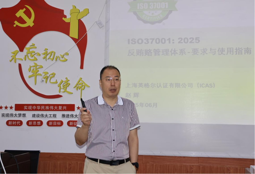 2025年06月27-28日,上海英格爾認證有限公司(以下簡稱“ICAS英格爾認證”)為貴州輪胎股份有限公司成功開展ISO37001:2025反賄賂管理體系新版標準和內審員培訓,該培訓由ICAS英格爾認證技術總監趙輝主講。