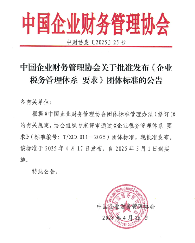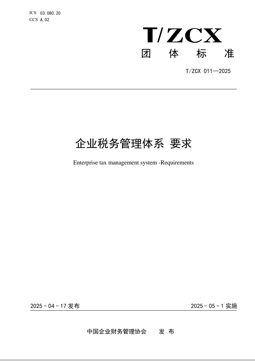 日前,中國企業(yè)財務(wù)管理協(xié)會正式發(fā)布《企業(yè)稅務(wù)管理體系要求》團(tuán)體標(biāo)準(zhǔn)(以下簡稱“標(biāo)準(zhǔn)”)。該標(biāo)準(zhǔn)由上海英格爾認(rèn)證有限公司(下簡稱“ICAS英格爾認(rèn)證”)牽頭制定。